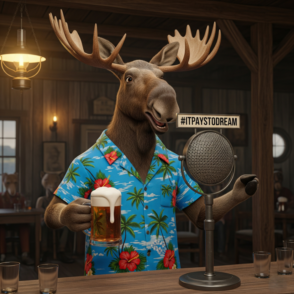 Goooood evening, Comedy Shed! [Taps mic.] What a sight, huh? I’m telling you, I look like a tropical tourist who got lost and ended up in a lumberyard! I mean, I don’t know what’s going on. One minute, I’m just minding my own business on the Saint Croix River, and the next, my buddy Dan Daley—the owner of this joint—is giving me this Hawaiian shirt! He says, “Andy, man, you’ve gotta get with the times!” And I’m like, “The times? What’s wrong with eating bark and looking majestic?!” And he says, “You’re a logger, not a hunter!” No, I’m a moose! Now I’m a logger… wearing a tropical shirt! It’s confusing!